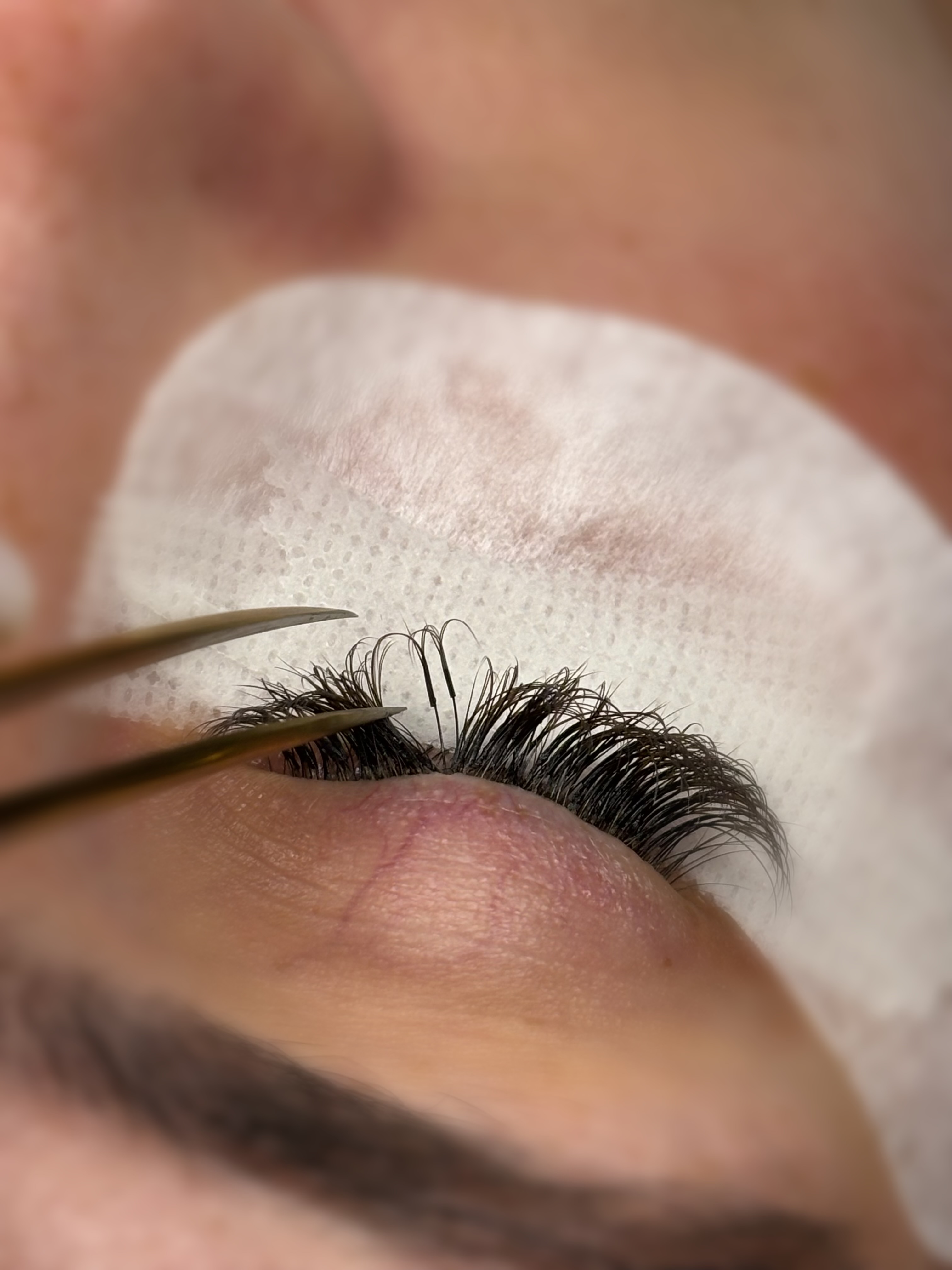 Lors de la prestation, les extensions trop longues, mal positionnées ou arrivées en fin de cycle sont retirées. Les cils naturels sont ensuite nettoyés, puis de nouvelles extensions sont posées afin de recréer une pose équilibrée, adaptée à votre regard.